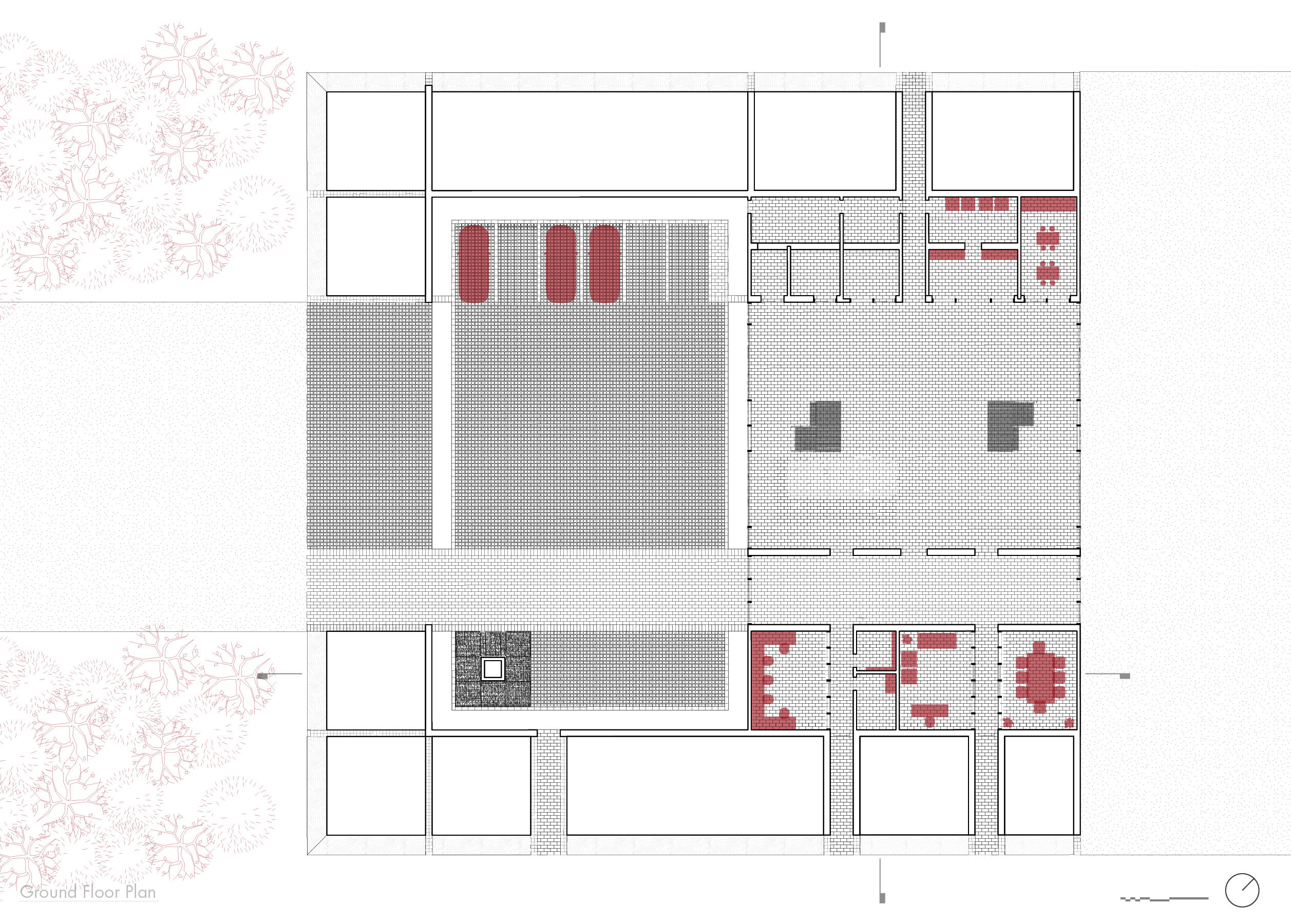 A key design strategy is the use of bermed construction, which adds thermal mass and protection to the concrete masonry unit (CMU) structure under extreme environmental conditions. The project’s identity stems from local architectural traditions of using earthwork for the durability, protection, and efficient operation of buildings.